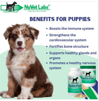 We have partnered with NuVet Labs to ensure your puppy receives the highest quality nutrition. We recommend that puppy parents continue using Nuvet Plus supplements after taking their pup home. This daily treat provides puppies key nutrients for immunity and tummy health while transitioning to a new home and will continue to offer total body support through each stage of life. Place your order for NuVet Plus now so you have a bottle ready for your puppy.NuVet plus is less than $20 per month($16 w/Autoship).